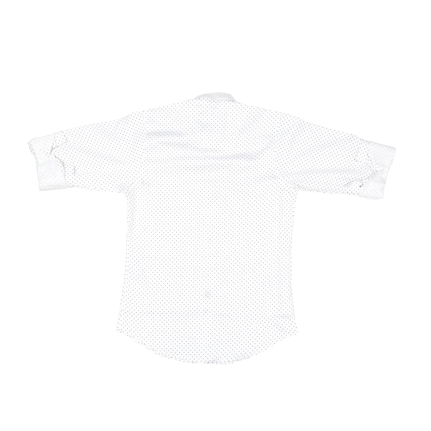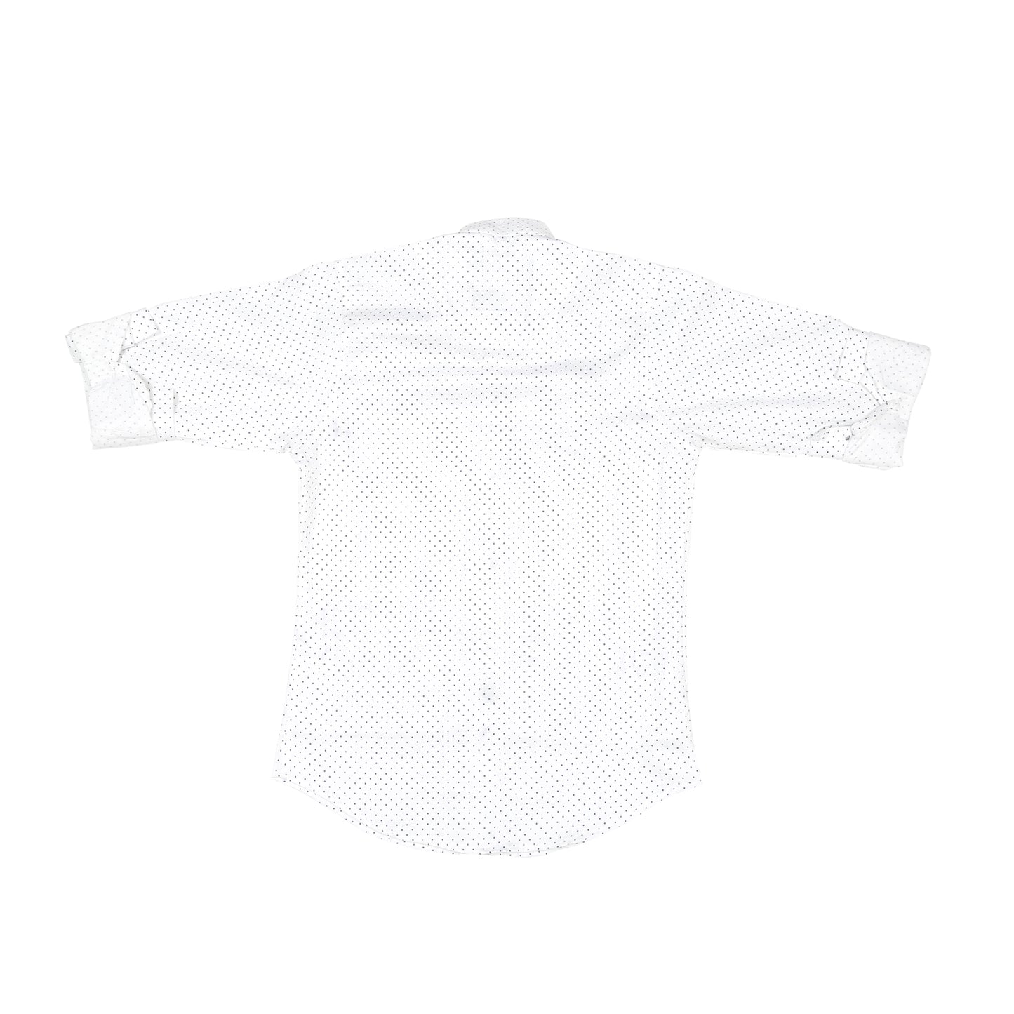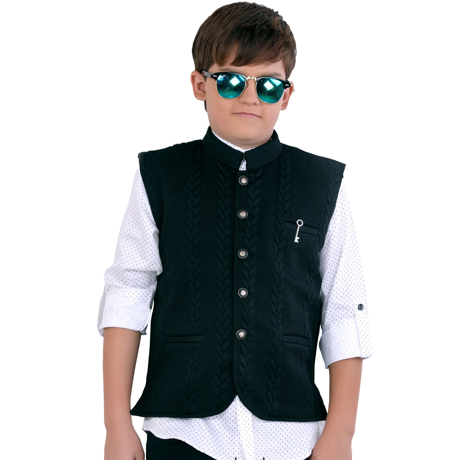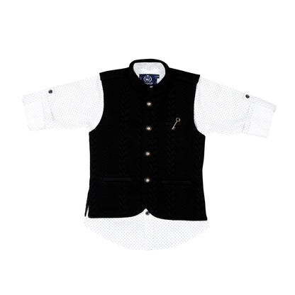Stylish black self-textured Nehru jacket and polka dot print shirt.
