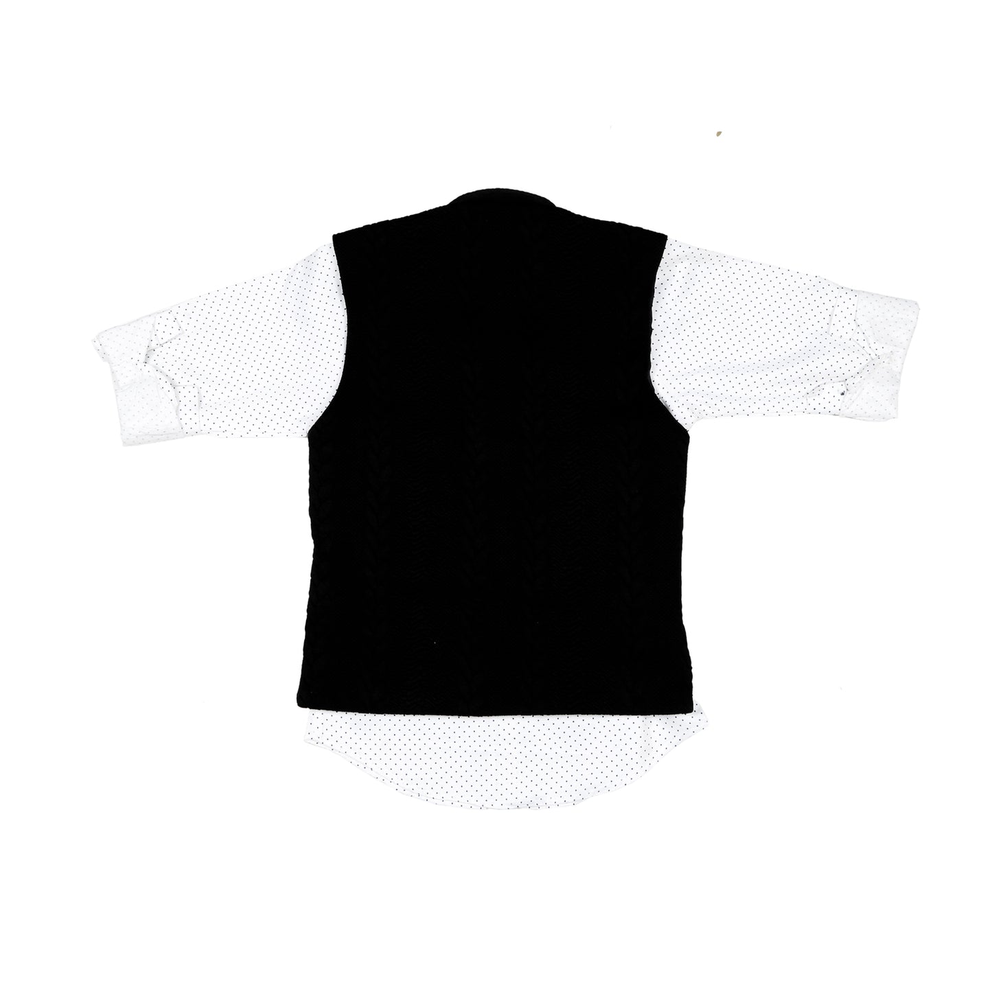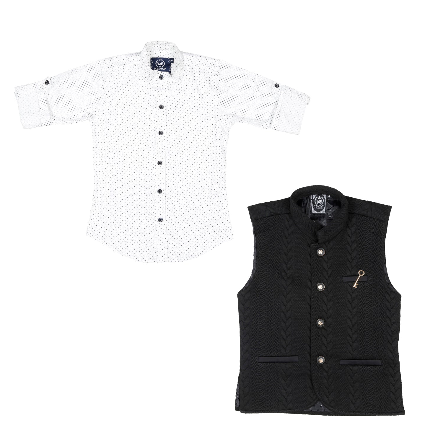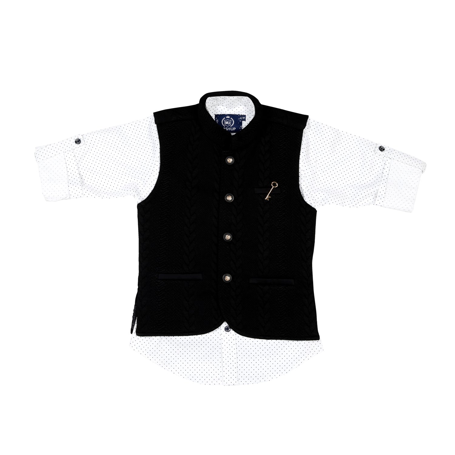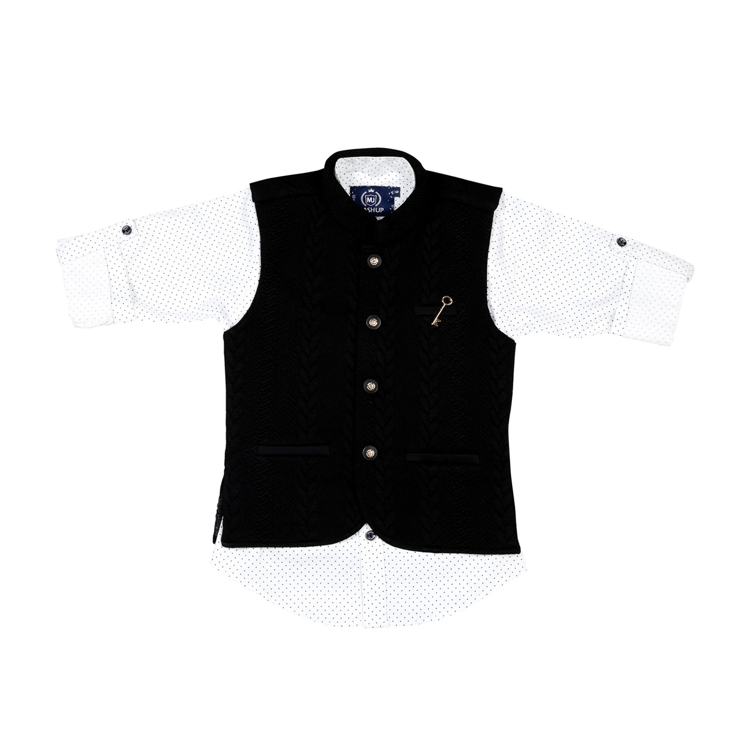 Give your son a contemporary look with this classic design by MashUp. Feel & fabric: Made from skin friendly cotton fabric to ensure your boy's comfort all day. Actual Colour:Waistcoat- Black,Shirt –White. Ideal Occasion: birthday parties, informal get-togethers and other festivities. Style Tip: Complete the look with a pair of casual loafers for a stylish look. Care Tip: Gentle hand/machine wash in cold water. Dry in shade. Size guide: