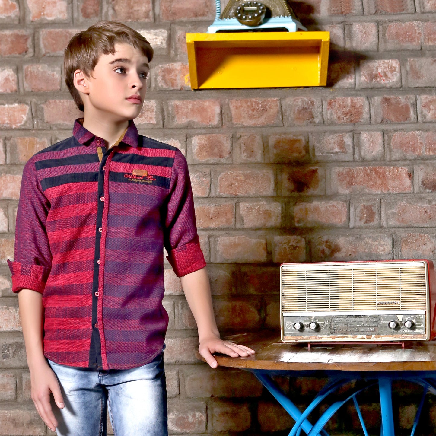 Ditch the regular tshirts and make his casual outings a stylish affair with this stylish woven shirt from MashUp.