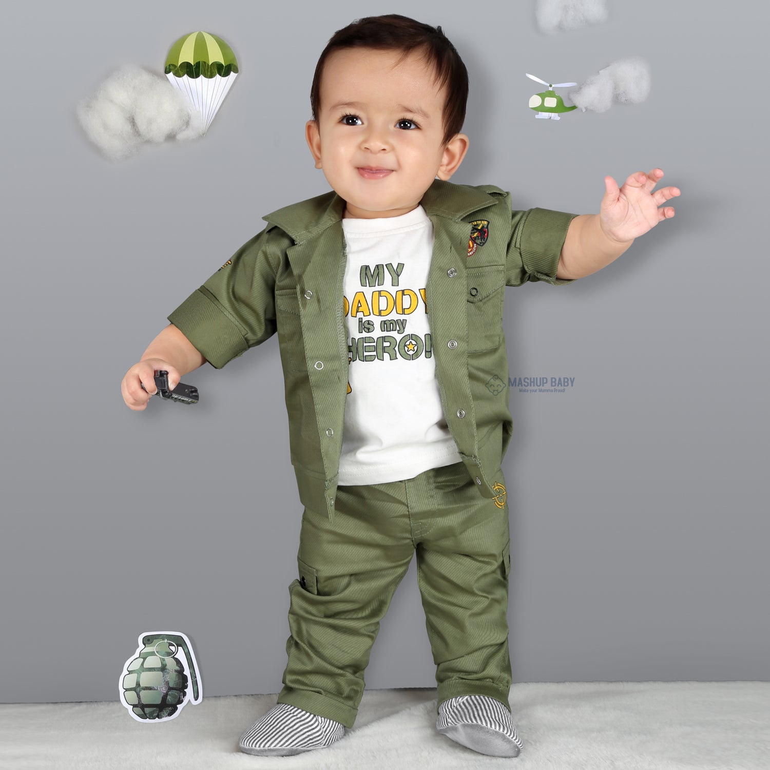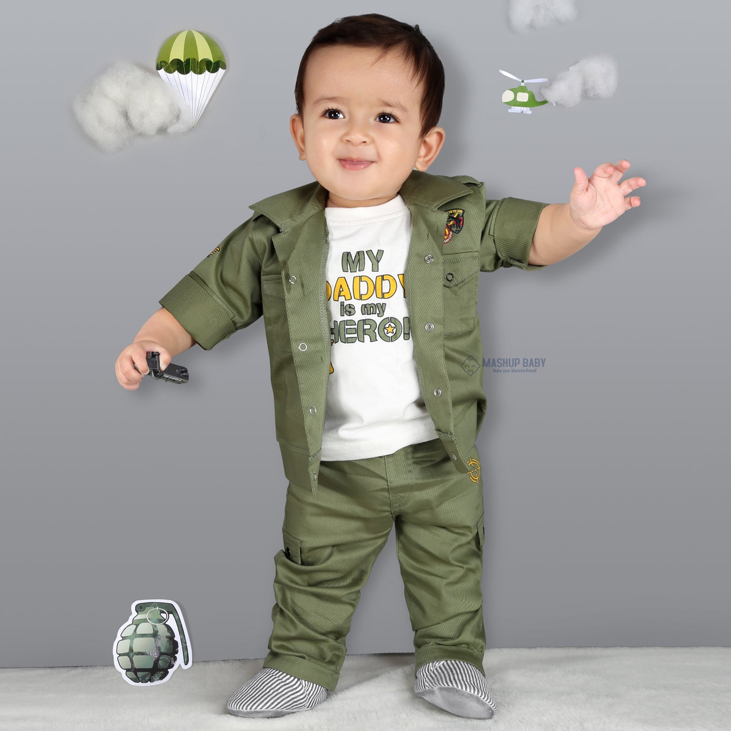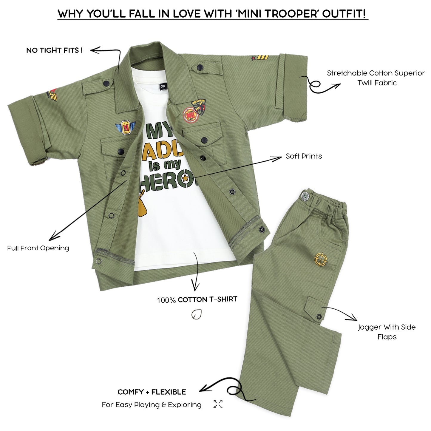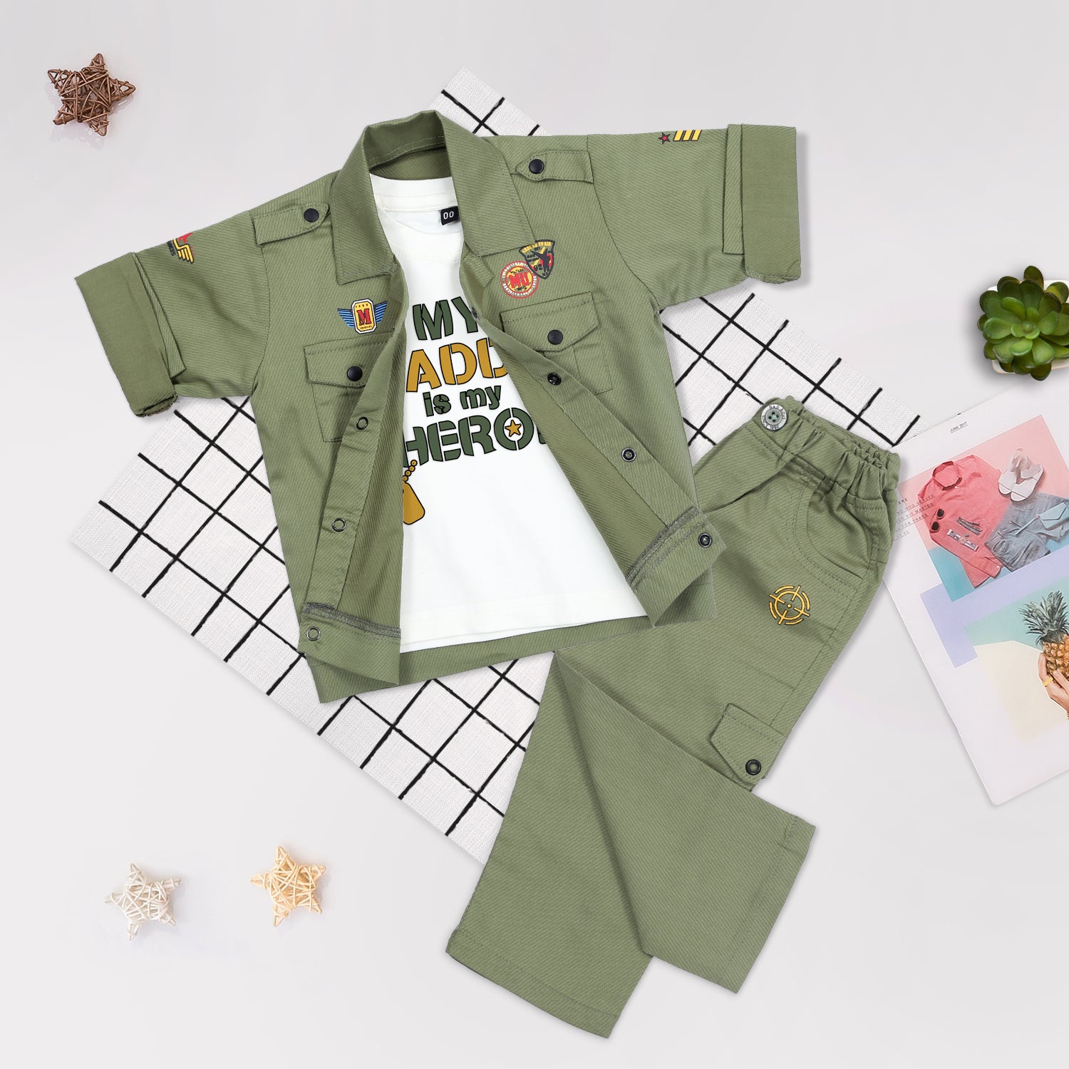 Mini Trooper: Army Jacket, Printed T-Shirt, and Pant Set!