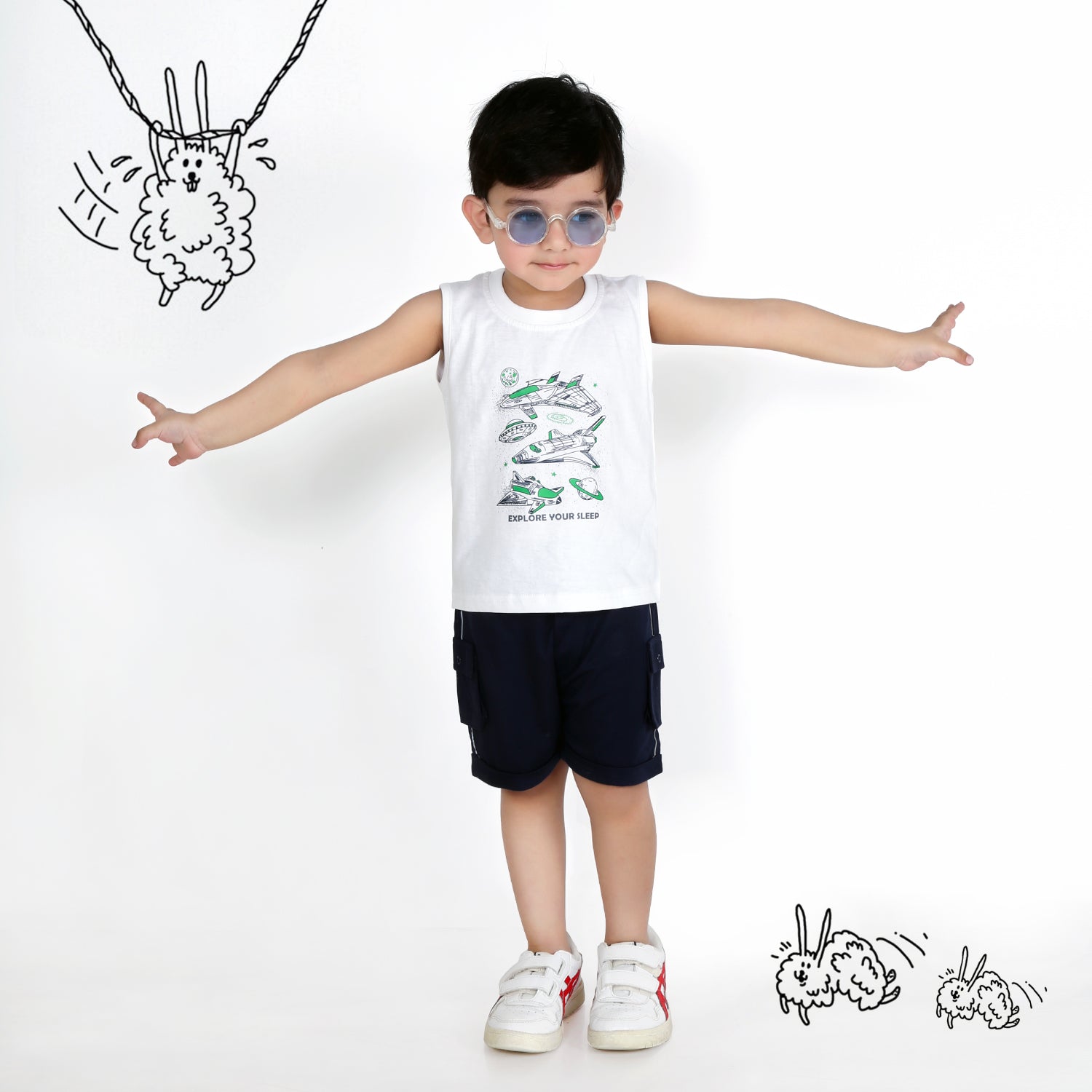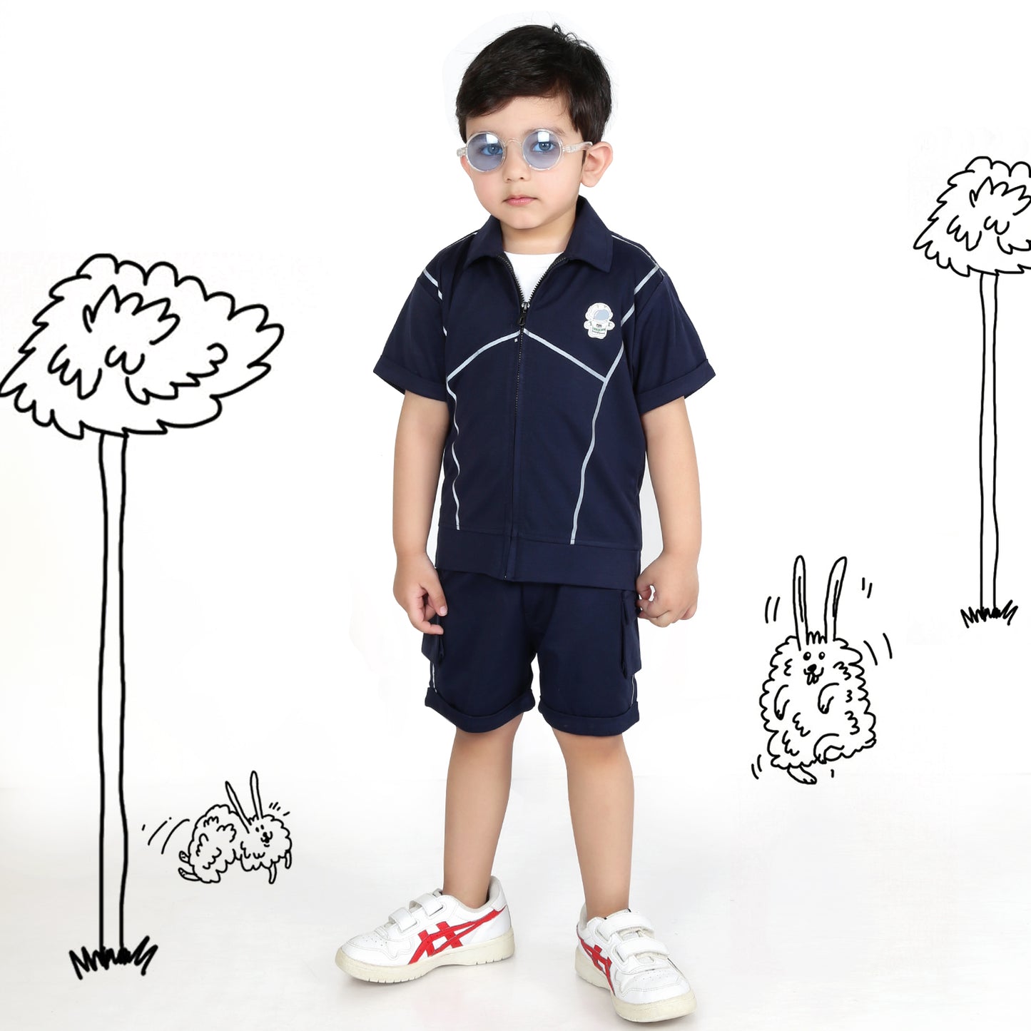 Elevate summer cool with our Streetwear Reflective Jacket, Half T-shirt, and Shorts Set for boys aged 0-6. This ensemble brings street style to the playground, featuring vibrant prints and a reflective jacket for a touch of urban flair. Let your little one turn heads during casual outings with this uniquely hip and comfy trio – because even the tiniest trendsetters deserve to shine in the summer spotlight!