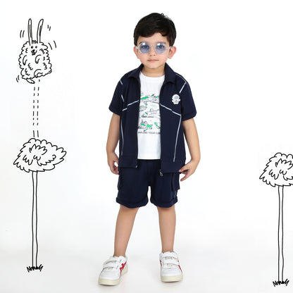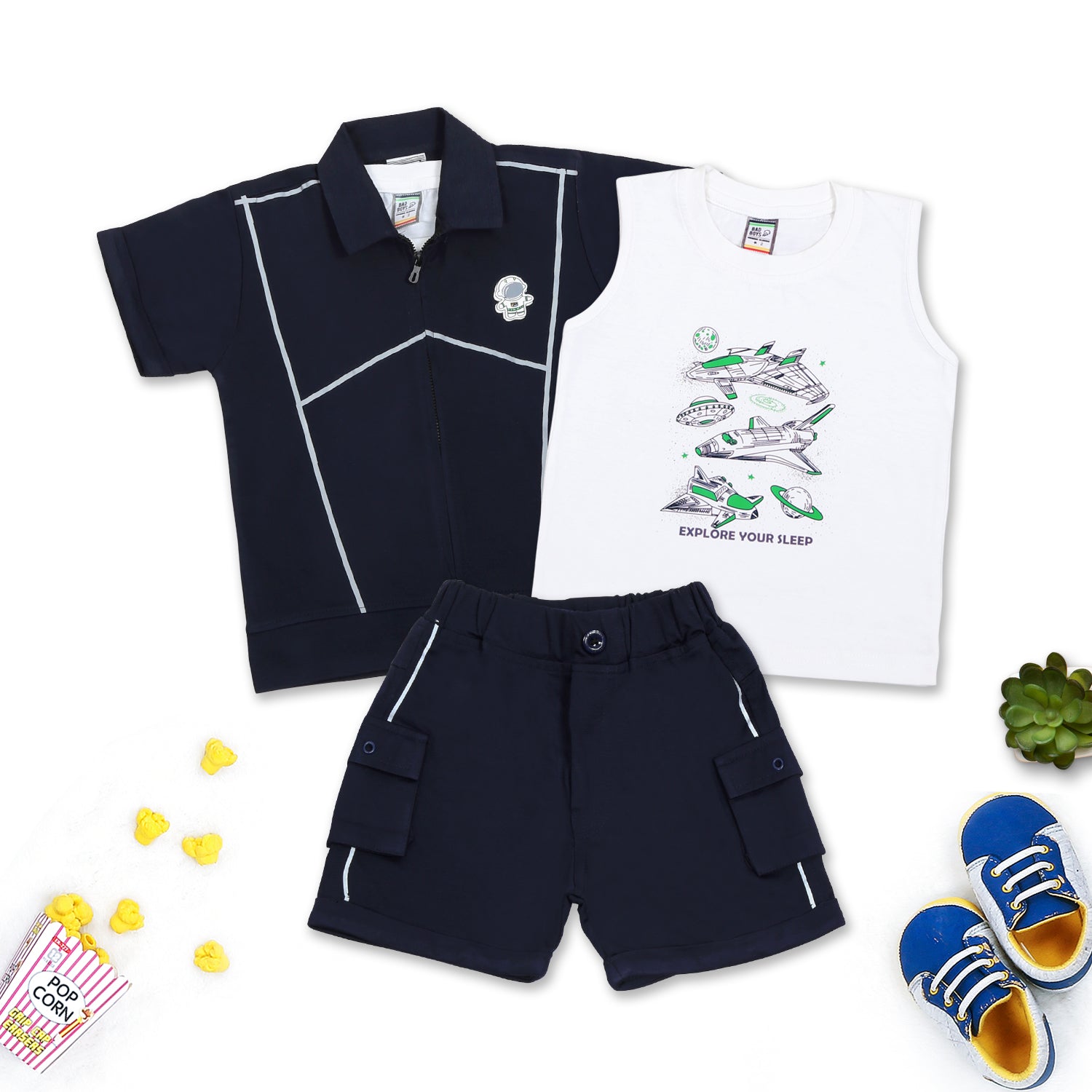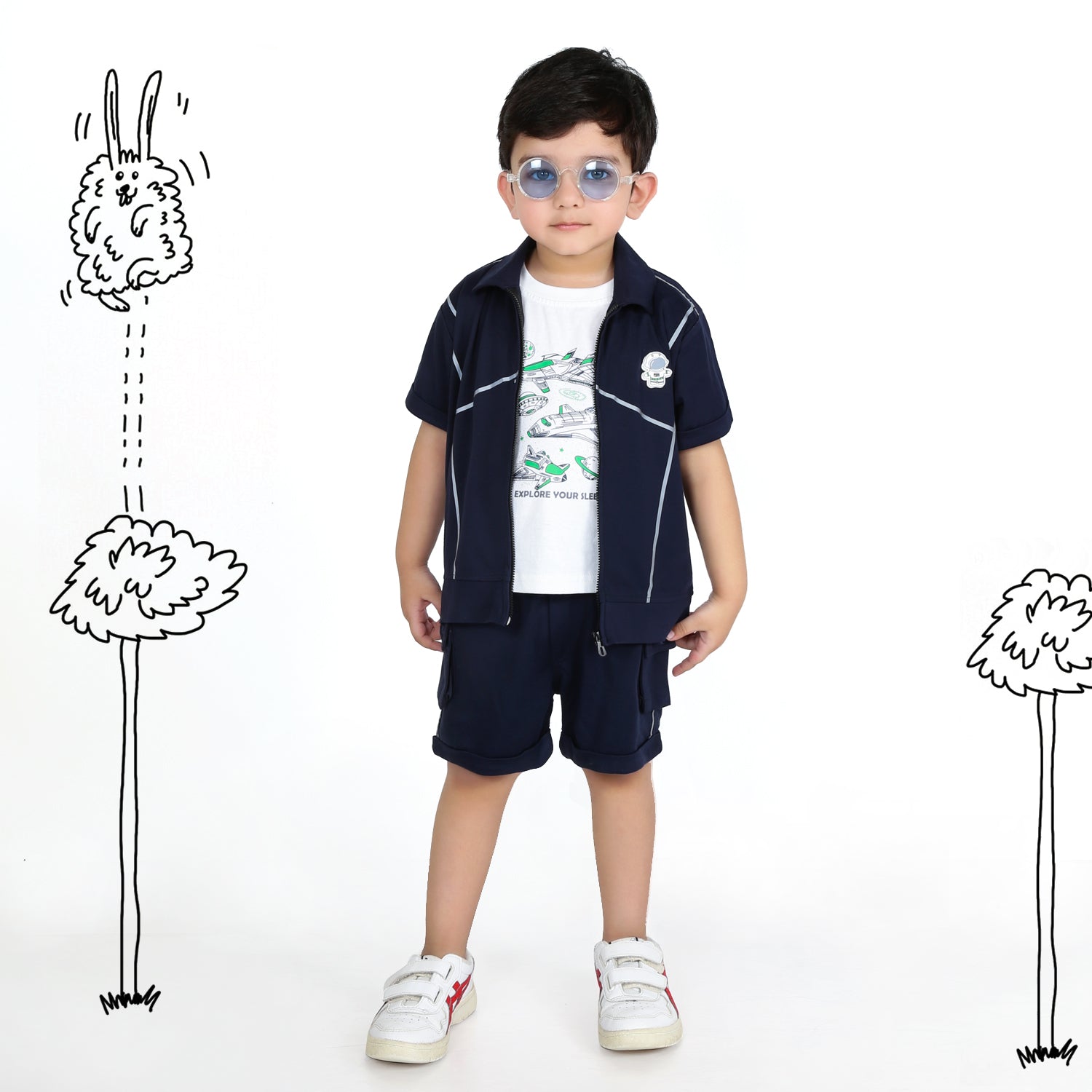 Summer Streetwear Half Jacket T-Shirt shorts set (pack of 3) with reflective print detailing