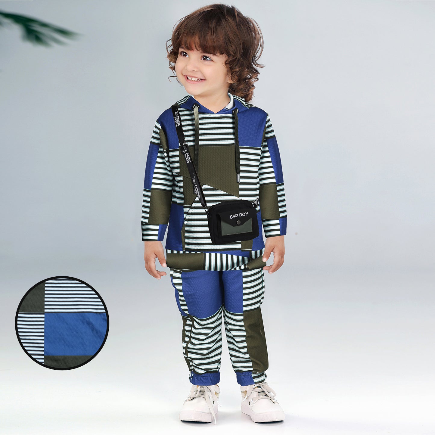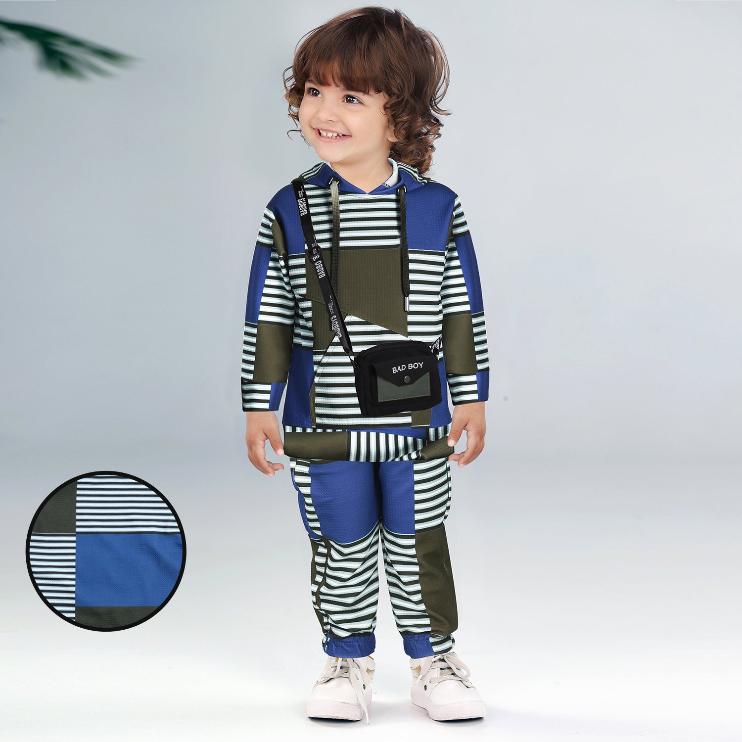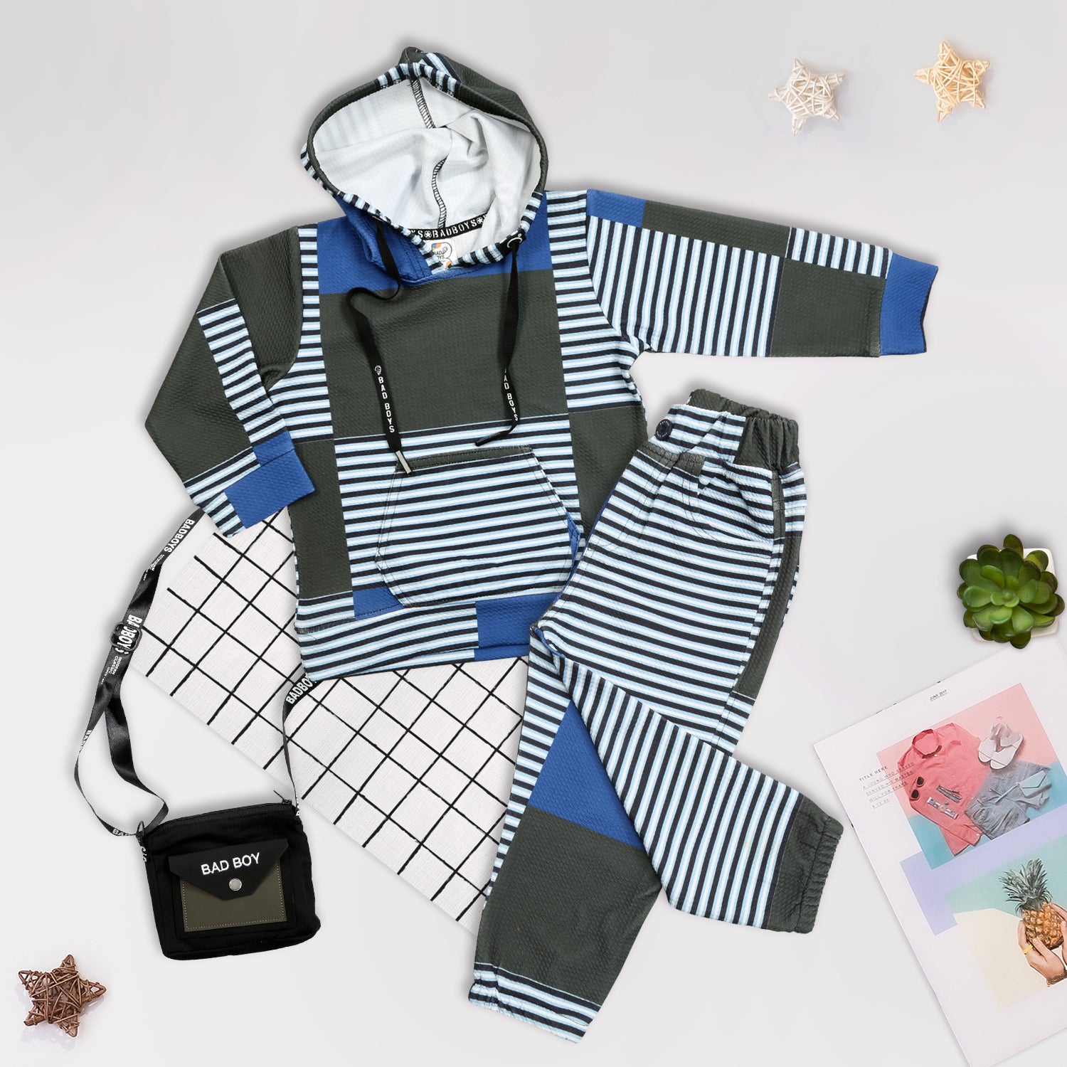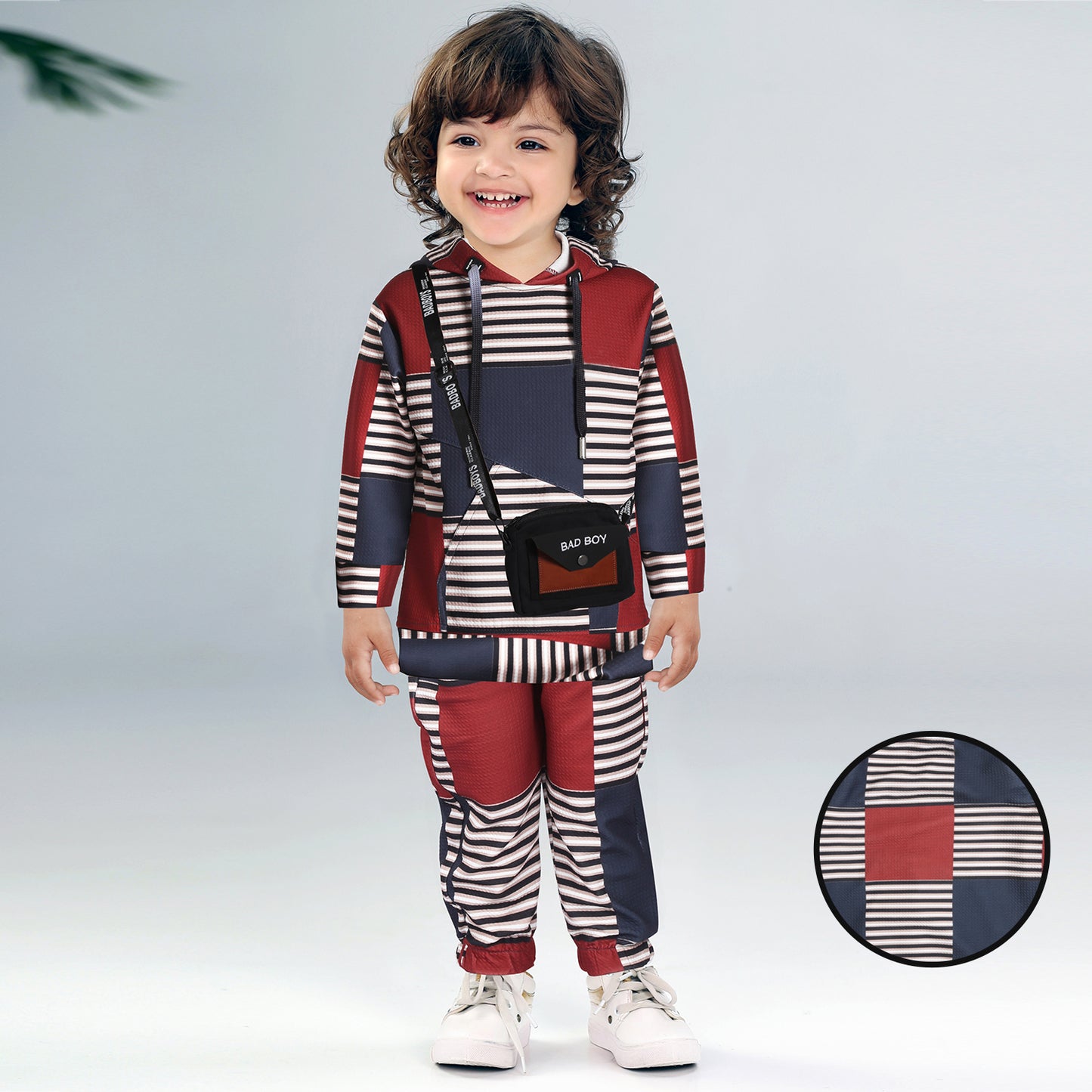 Gear up your little one in style with this adorable printed full-sleeves T-shirt and jogger set, complete with a matching bag! Designed for comfort and fun, the soft fabric keeps your child cozy, while the playful prints add a trendy touch. The joggers feature an easy-fit waistband for all-day movement, and the coordinating bag makes it extra cool for little explorers. Perfect for casual outings, playdates, or just looking effortlessly stylish, this set is a must-have. Let your tiny trendsetter step out in confidence—because fun fashion starts young!